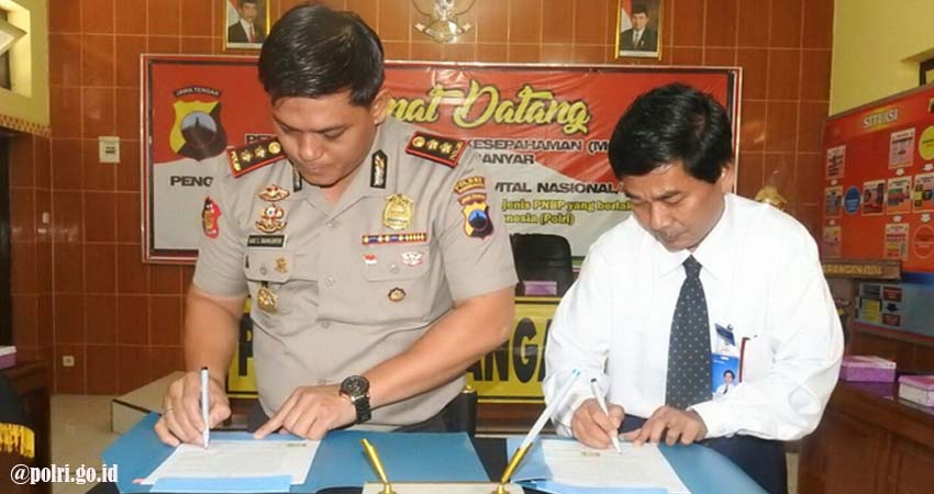 KSATRIA, (BSP)–Untuk melakukan pengamanan obyek vital, termasuk perbankan, Polres Karanganyar melakukan penandatanganan nota kesepahaman (MoU). Penandatangan MoU dilakukan Kapolres AKBP Ade Safri Simanjuntak, SIK, MSi bersama seluruh pimpinan perbankan di Karanganyar.